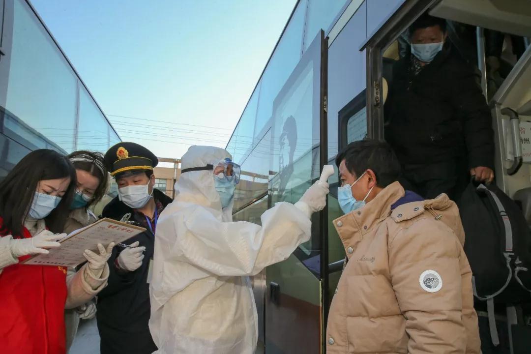 2月16日,车辆到达员工返岗的始发站——河南商丘。次日凌晨五点,组织人员做好务工人员出行前的健康检测,客运司乘人员上车前逐一测量温并进行身体健康调查,出现发热、乏力、干咳等症状者不得上车。同时,实行实名制包车、乘车,司乘人员全程佩戴口罩、分散乘坐。